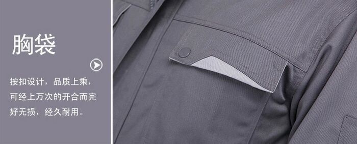維修工作服以淺灰色為主色,口袋處用下搭式設(shè)計,黃色拼接,袖口做工精細(xì),走線嚴(yán)密,結(jié)實耐磨時尚插袋,精細(xì)袖口,精致筆袋,松緊式下擺。