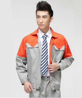 JL-QD253東莞工衣以藏藍色為主色,胸前衣兜采用紅色撞色拼接,走線細致,實用性強。左中腰間口袋均采用雙層設計,傾斜線條,穩重大氣